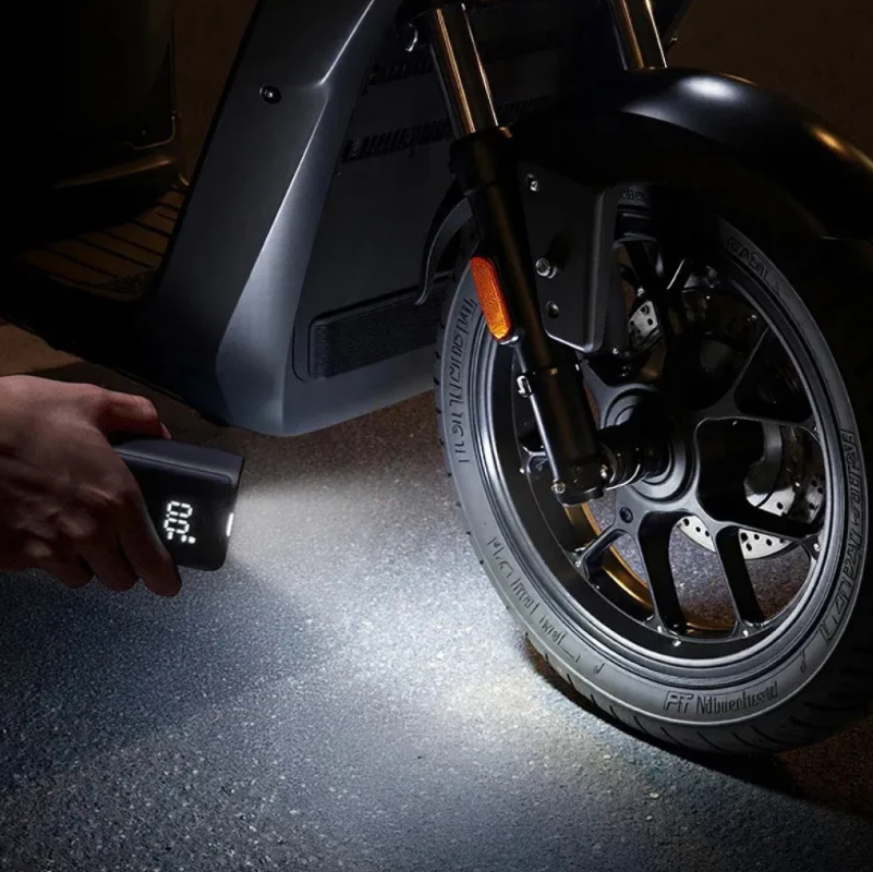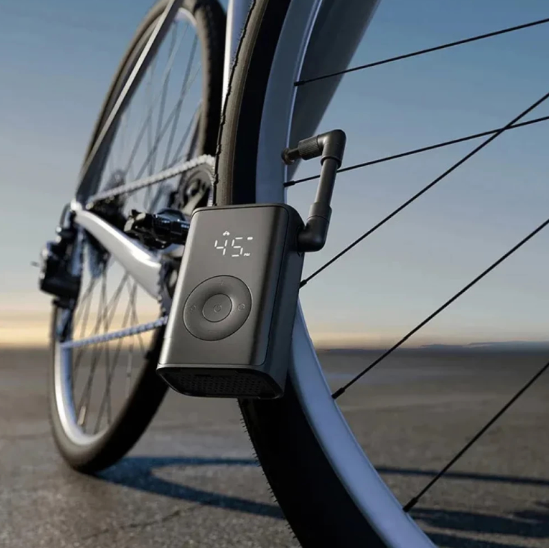 Apesar do tamanho reduzido de 60 × 38 × 93 mm, o Mijia Portable Air Compressor alcança uma pressão de 0,2–10,3 Bar / 3–150 PSI, suficiente para a maioria dos veículos e equipamentos desportivos.