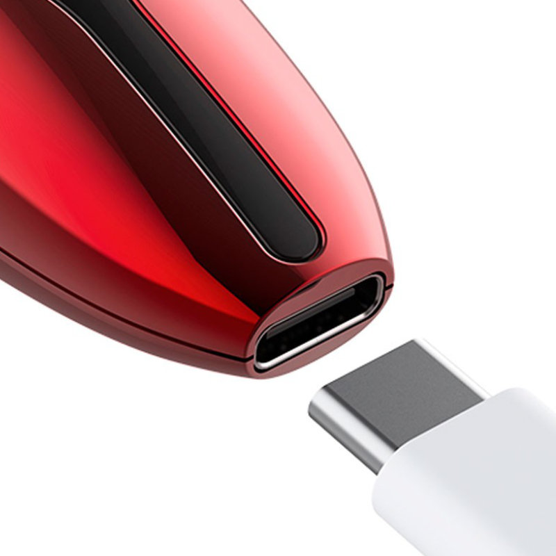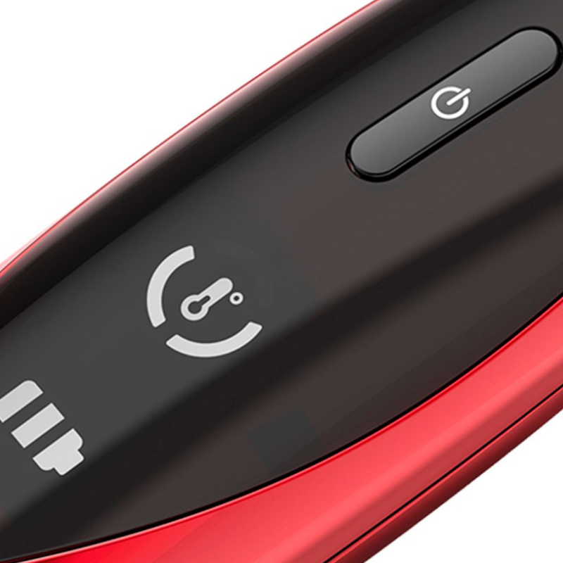 Indicadores LED para temperatura, bateria e pré-aquecimento.