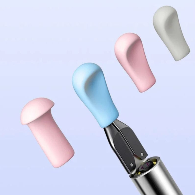 Kit completo de acessórios → espátulas auditivas, protetores, cotonetes e escova de limpeza.