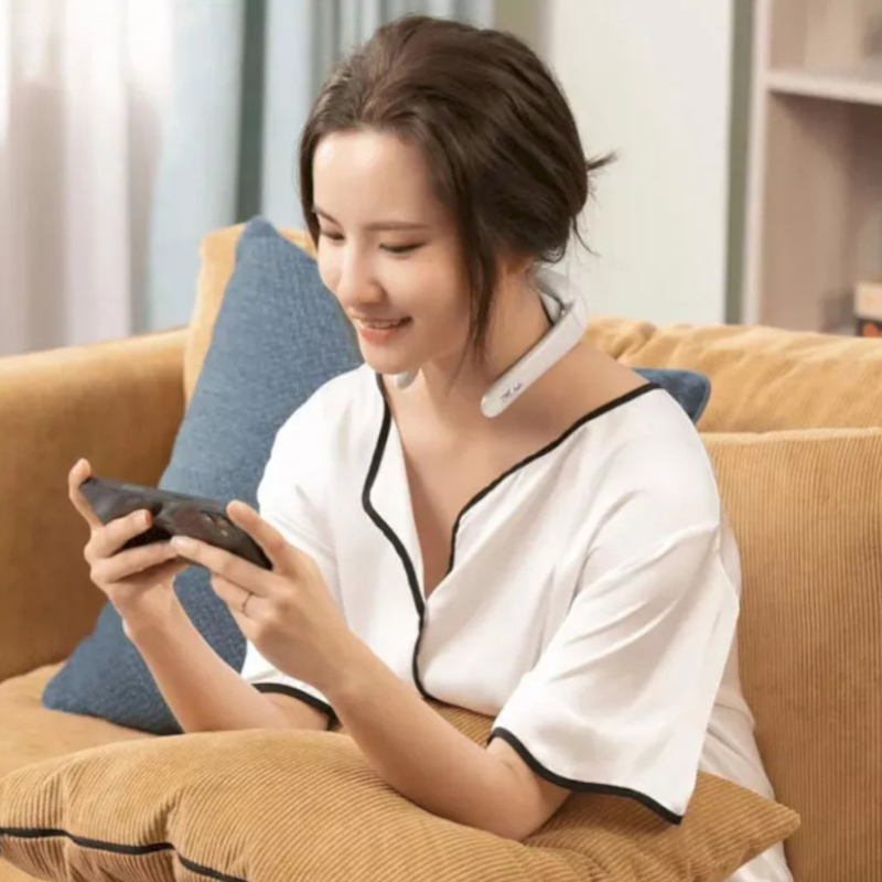 O Enchen G6 Foldable Neck Massager combina a tecnologia de massagem TENS com aquecimento termostático a 42 °C, proporcionando um alívio eficaz da dor e tensão muscular no pescoço.
