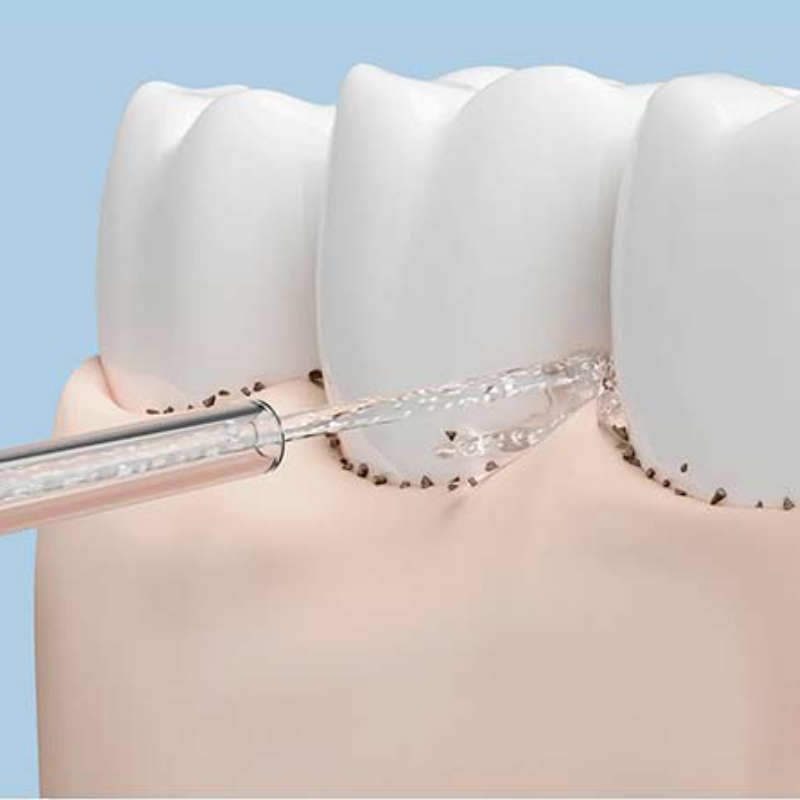 Cada ponta roda 360° uma vez instalada, permitindo alcançar facilmente todas as áreas da boca para uma limpeza eficaz entre os dentes e na linha da gengiva.