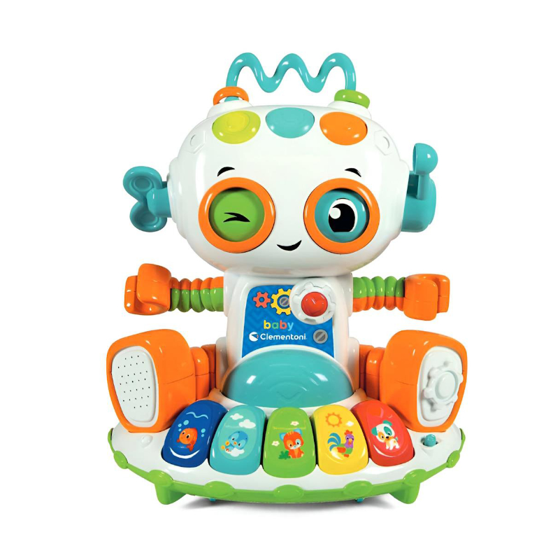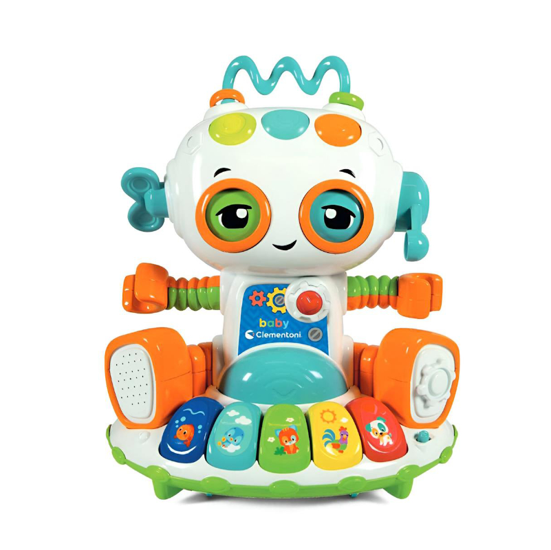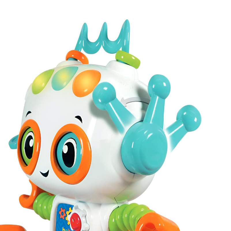 Equipado com motor, luzes, sons e múltiplas atividades, este robô foi criado para estimular habilidades manuais, coordenação, lógica e curiosidade natural dos bebés a partir dos 12 meses.