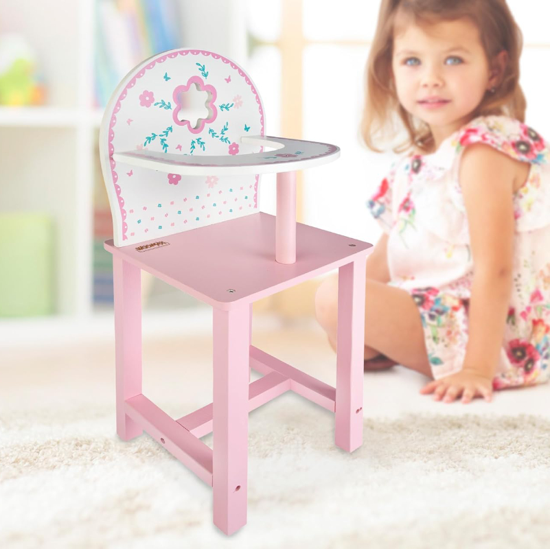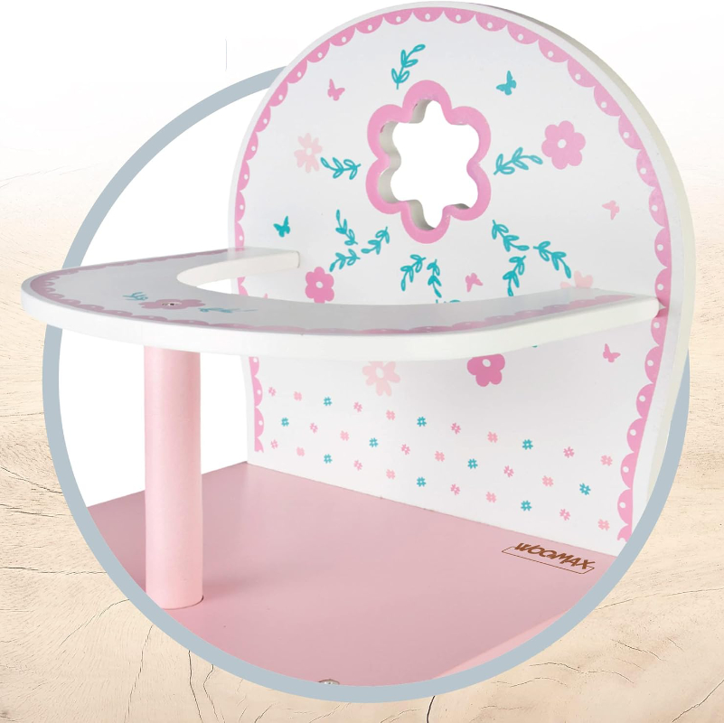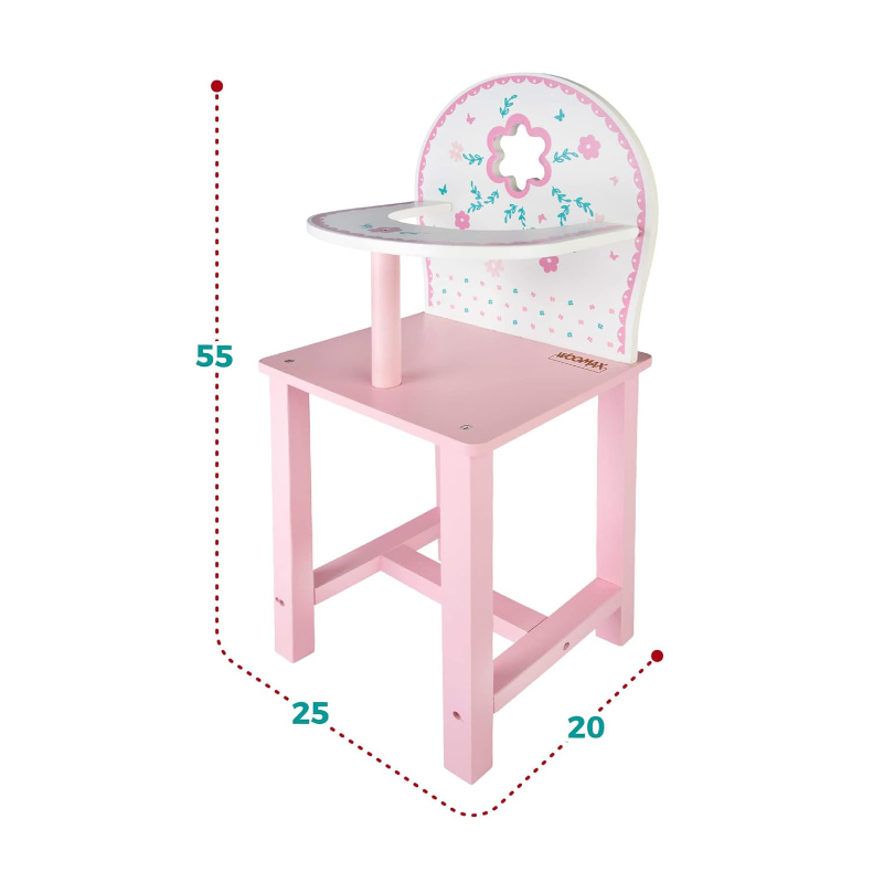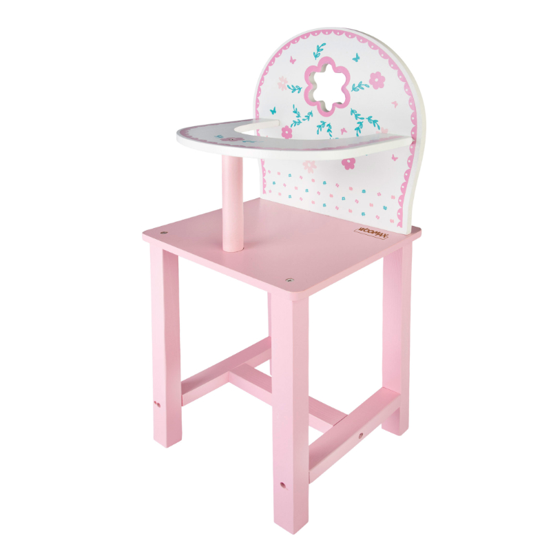 A Cadeira de Refeição de Madeira para Bonecas Woomax é uma cadeira de brincar perfeita para bonecas, permitindo às crianças recriar momentos do dia a dia, como dar de comer ou cuidar das suas bonecas.