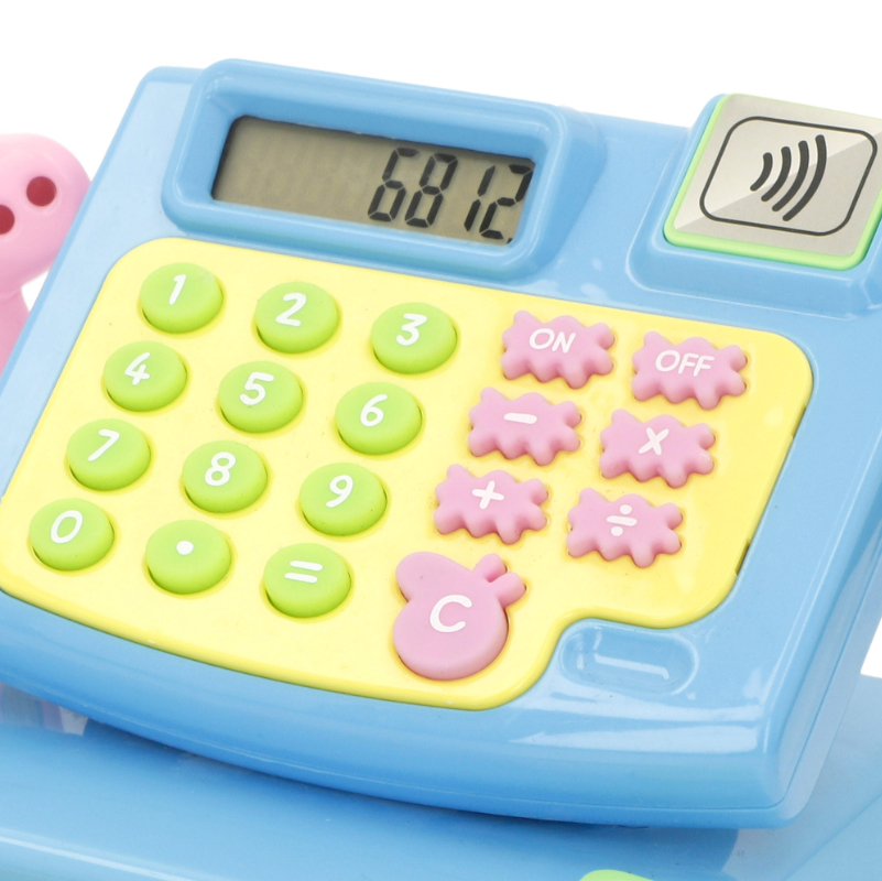 Este brinquedo interativo permite que as crianças simulem compras e vendas, desenvolvendo habilidades de contagem, coordenação motora e imaginação.