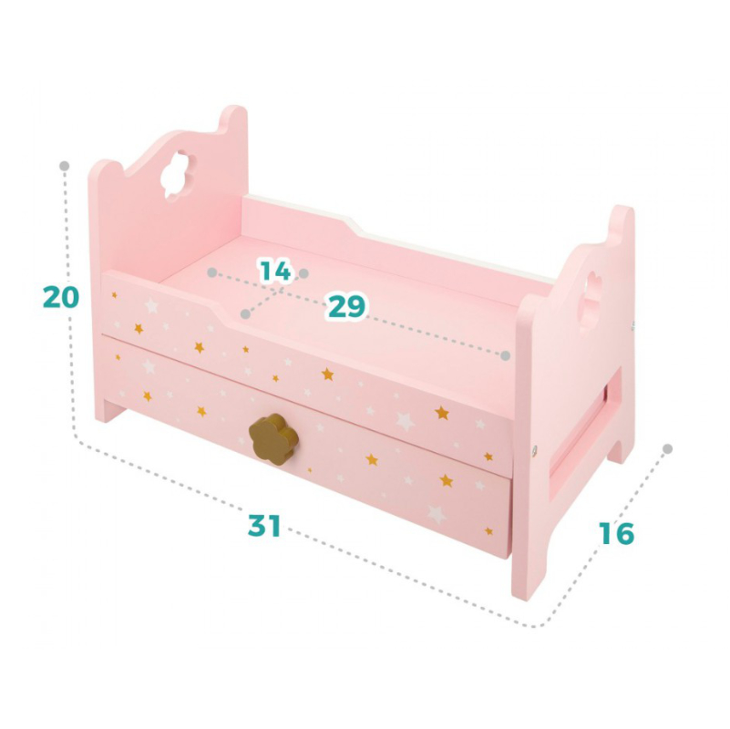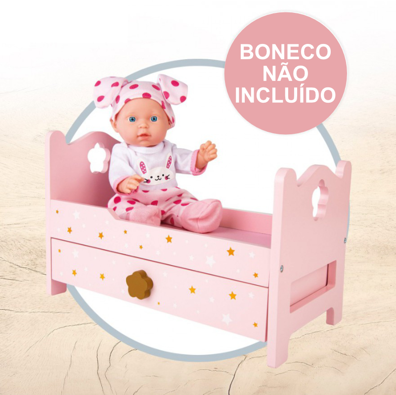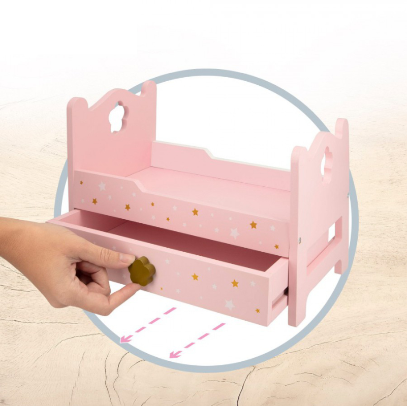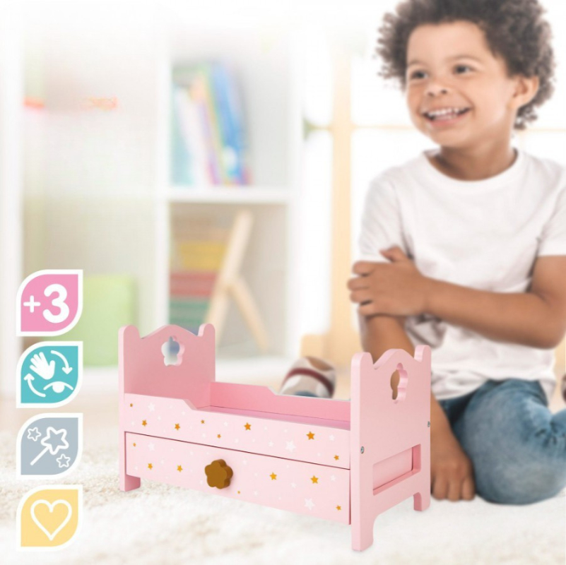 A Cama de Madeira Woomax é uma cama de brincar perfeita para bonecas, ideal para recrear quartos e histórias imaginativas.