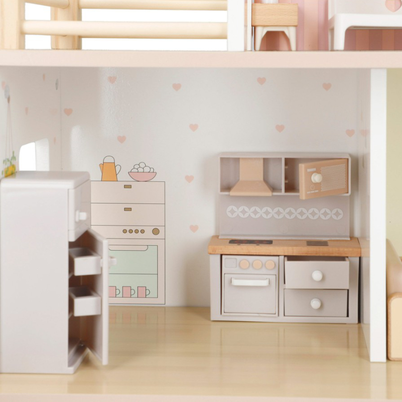 As cores suaves, os detalhes cuidadosos e a estrutura resistente tornam-na ideal para estimular o jogo simbólico, a criatividade e a motricidade fina.