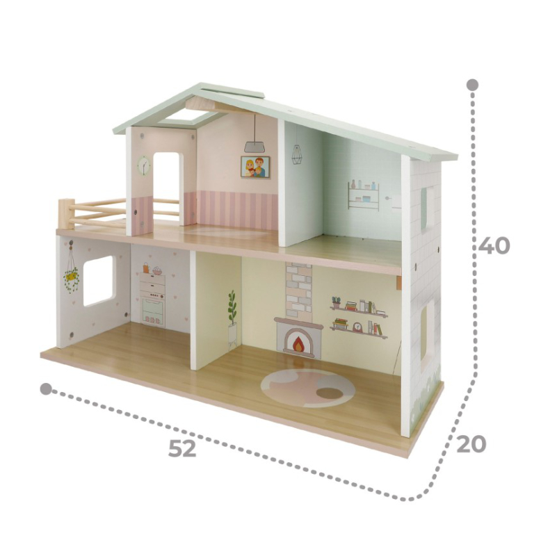 Com um design encantador e completamente fabricada em madeira, esta casinha oferece três áreas de brincadeira onde as crianças podem recriar rotinas, histórias e momentos do dia a dia de forma criativa.