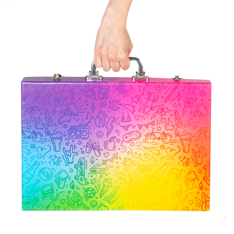 Inclui uma grande variedade de lápis de cor, marcadores, lápis de cera e acessórios, permitindo pintar, desenhar e criar sem limites.