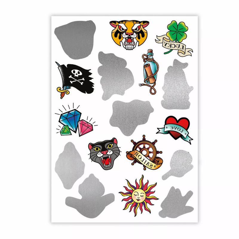 24 tatuagens transferíveis, incluindo algumas com efeito surpresa