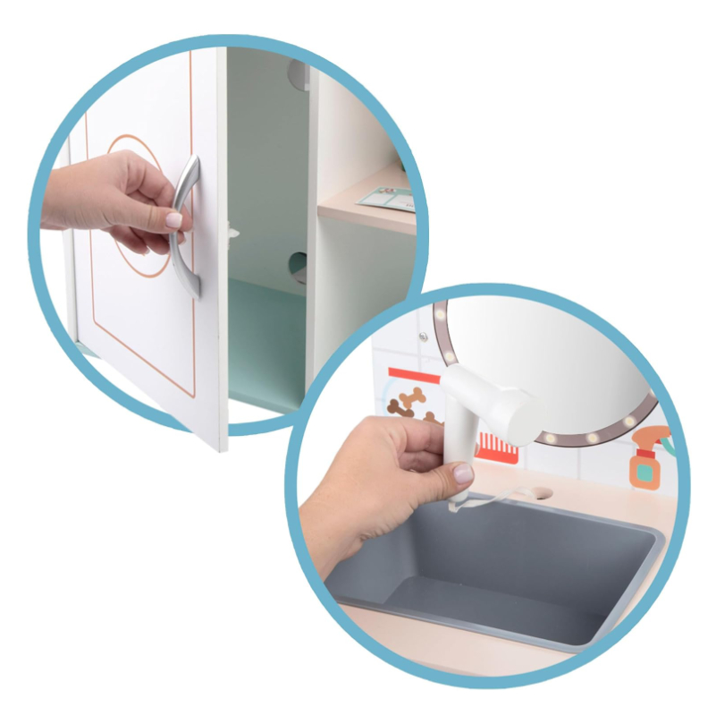Com cores suaves, cantos arredondados e acessórios realistas, este centro de cuidados incentiva o jogo simbólico, a criatividade e a aprendizagem sobre o cuidado com animais.
