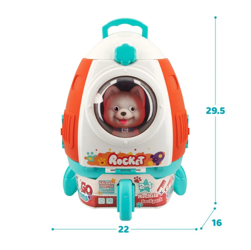 A mascote precisa de cuidados especiais antes da sua próxima missão espacial, e o pequeno foguetão transforma-se num verdadeiro centro de tratamento portátil, cheio de acessórios para brincar.