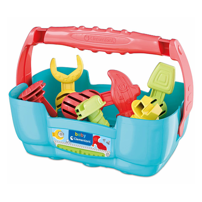 Com acessórios como martelo, chave de parafusos, chave de porcas, pregos e porcas coloridas, os pequenos podem explorar, montar, encaixar e imaginar pequenas reparações.
