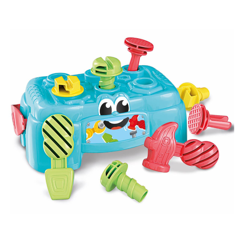 Criada especialmente para mãos pequenas, esta mesa inclui várias ferramentas seguras e fáceis de usar, permitindo que as crianças imitem o mundo dos adultos de forma divertida e educativa.