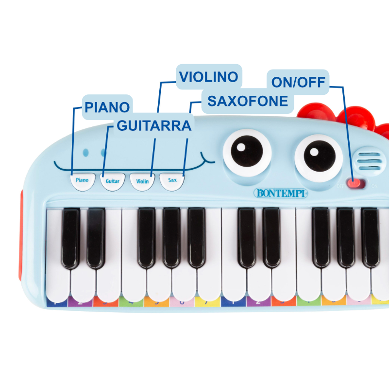 O Órgão Elétrico Bontempi 24 Teclas Dino é o instrumento musical perfeito para estimular a criatividade e o talento musical das crianças.