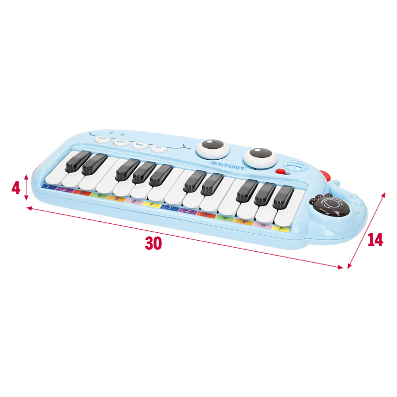 Com 24 teclas, luzes coloridas e efeitos sonoros divertidos, permite que os pequenos explorem ritmos, melodias e diferentes combinações musicais, desenvolvendo coordenação motora, percepção auditiva e expressão artística.