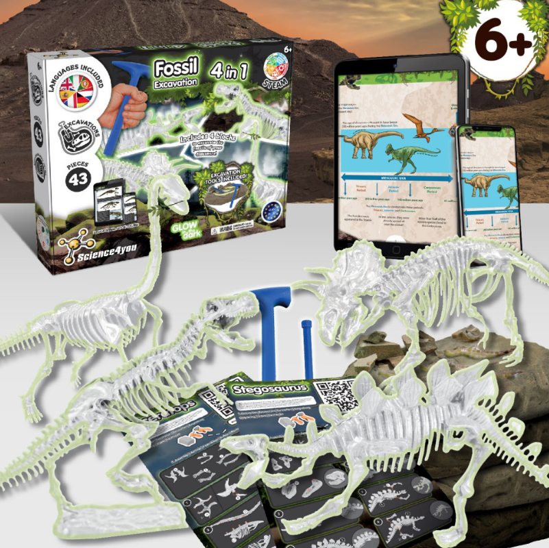 Torna-te num verdadeiro paleontólogo com as Escavação 4 em 1 Brilha no Escuro da Science4you!