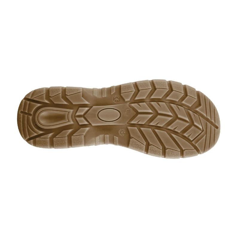 A sola em PU de dupla densidade é antiderrapante e antiestática, assegurando uma excelente aderência em superfícies húmidas ou irregulares.