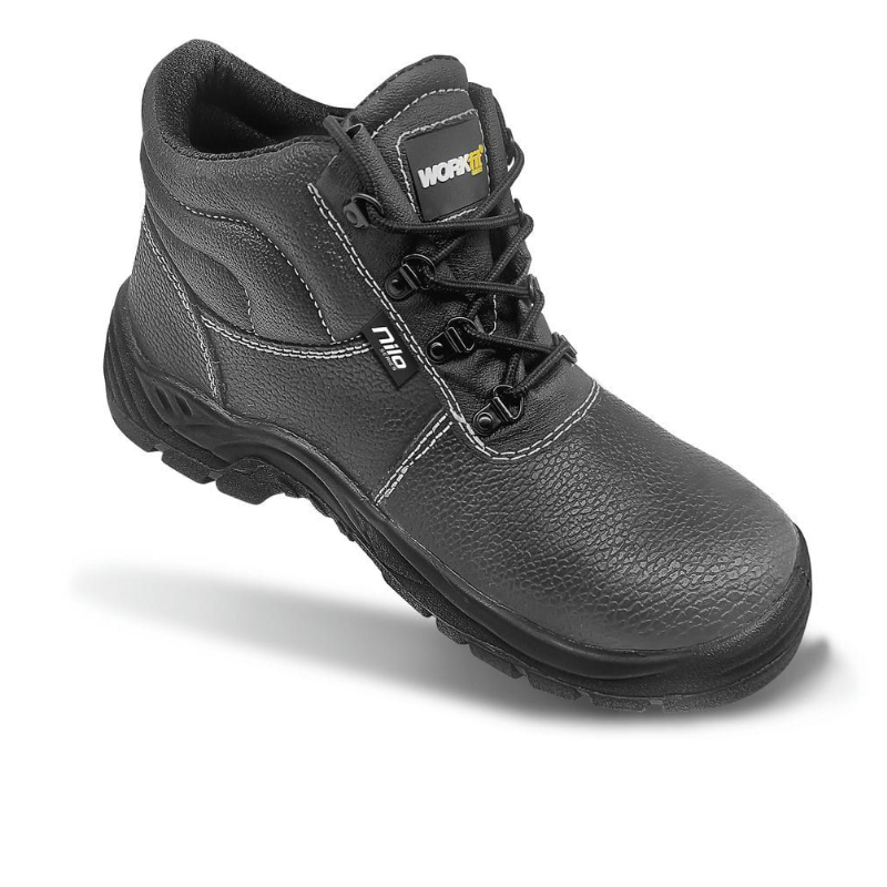 A palmilha têxtil antiperfuração (4 mm) garante segurança e flexibilidade, enquanto a sola em PU de dupla densidade é antiderrapante e antiestática, assegurando uma aderência superior em superfícies húmidas ou irregulares.