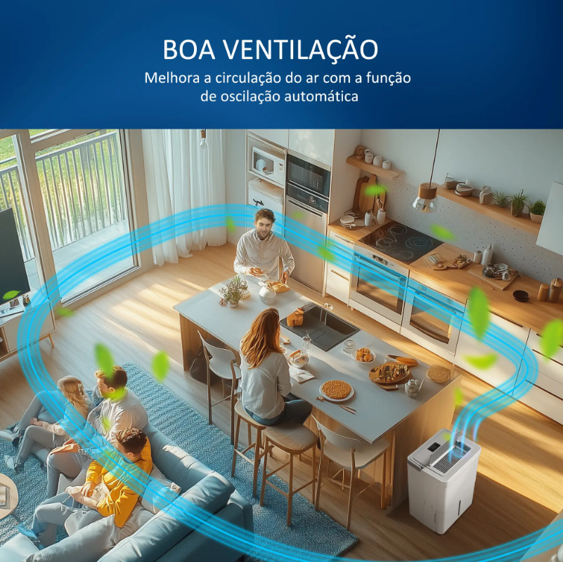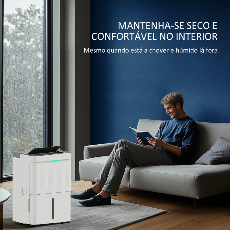Com elevada capacidade de extração de humidade, é perfeito para salas, caves, lavandarias, casas de banho ou quartos, ajudando a eliminar humidade excessiva, bolor, maus odores e a secar a roupa mais rapidamente, sem necessidade de calor extra.