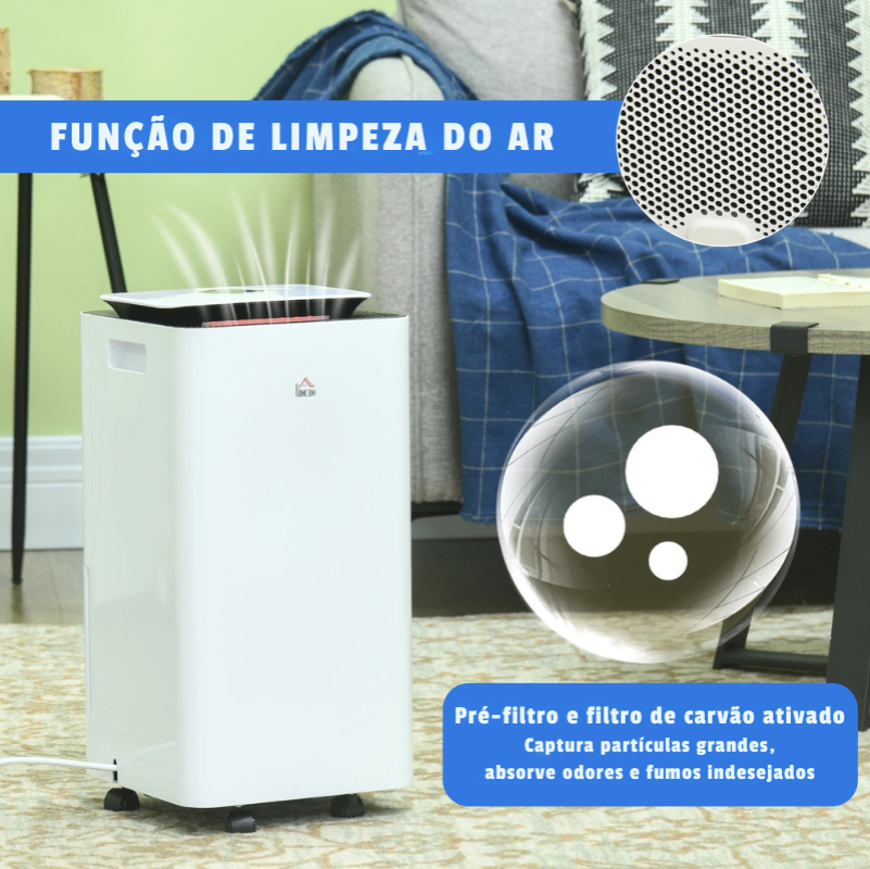 Este desumidificador elétrico da HOMCOM foi projetado para manter o ar da sua casa mais seco, saudável e confortável.