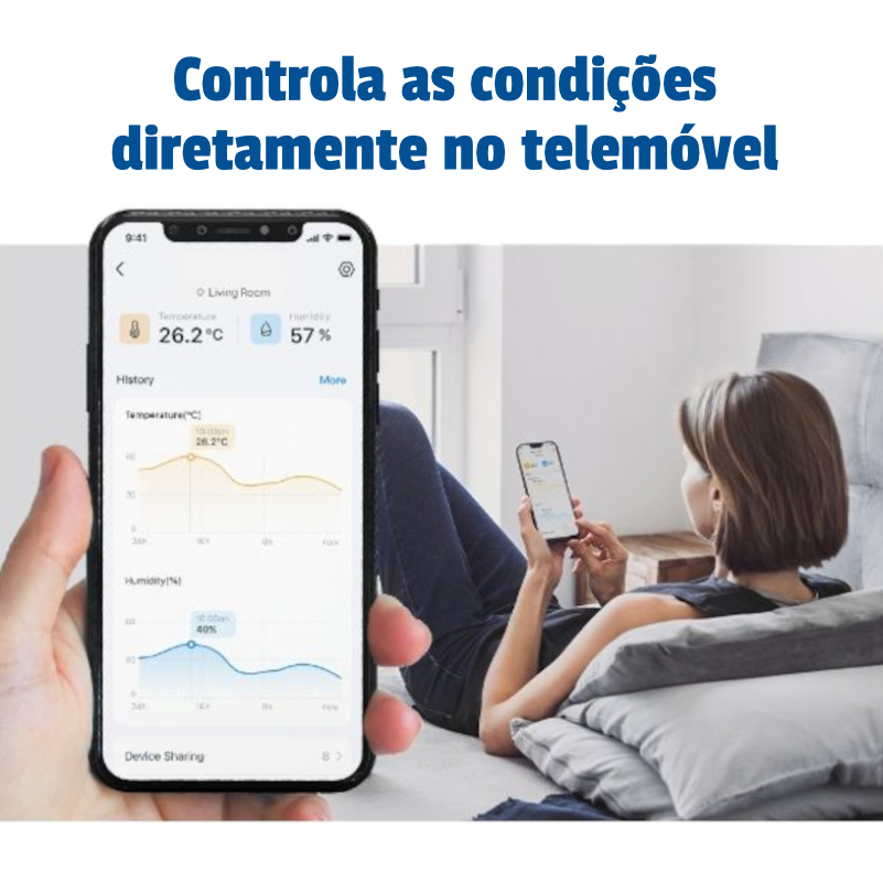 Compatível com Alexa e Google Home, oferece medições extremamente precisas e atualização constante dos dados, garantindo controlo total do ambiente através da app Tapo.