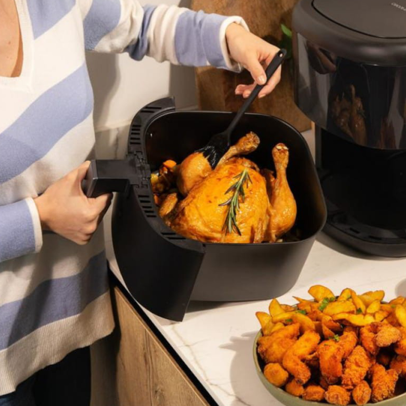 Com 6 litros de capacidade, 1700 W de potência e a avançada Tecnologia PerfectCook, permite preparar refeições completas, crocantes por fora e suculentas por dentro, utilizando quase nenhum óleo.