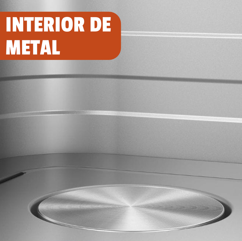 O interior metálico sem BPA evita odores a plástico e preserva o sabor natural dos alimentos.