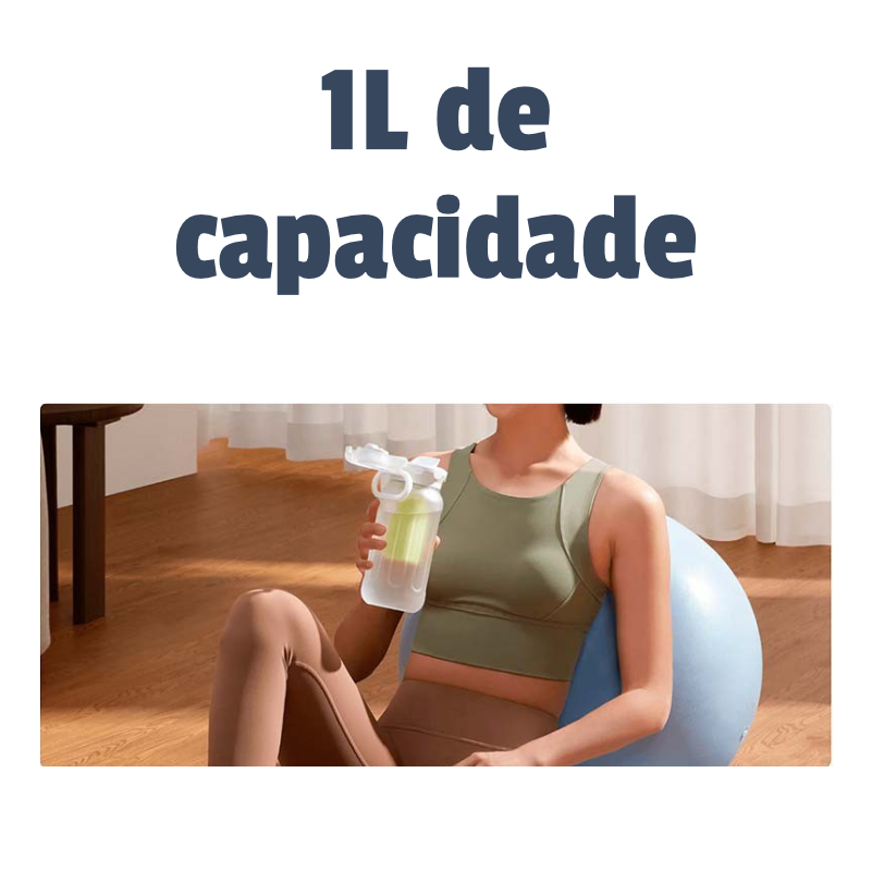 Com capacidade de 1 litro, permite manter-te hidratado ao longo do dia sem necessidade de recargas constantes.