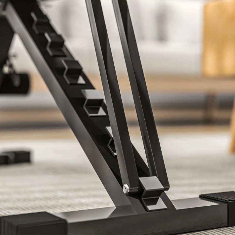 Com múltiplos níveis de ajuste, estrutura robusta e design dobrável, permite realizar uma grande variedade de exercícios de força, abdominais e musculação com total conforto e segurança.
