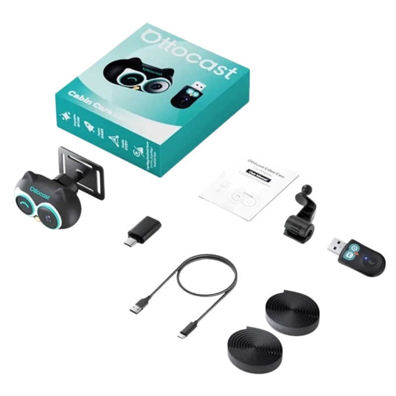 O Ottocast Cabin Care (Car Nanny) é um adaptador 2-em-1 que combina CarPlay sem fios com uma câmara de monitorização do banco traseiro Full HD.
