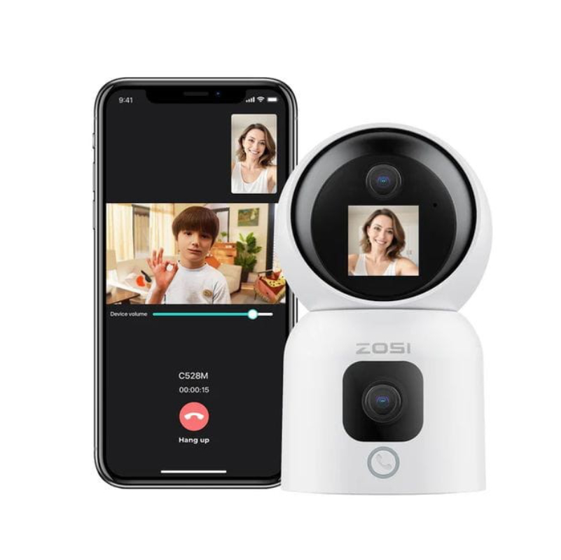 A ZOSI C528M é uma câmara de vigilância com duas lentes de 3 MP cada, oferecendo resolução 2K e rastreamento inteligente de movimento por IA.
