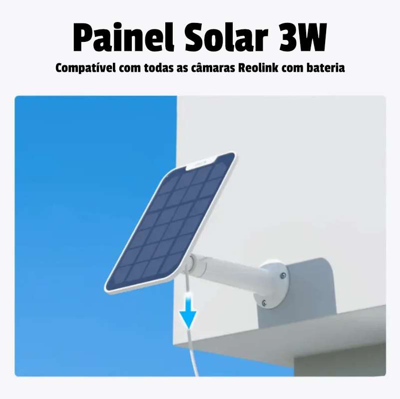 Bateria de longa duração: 4800 mAh, recarregável via cabo USB ou painel solar.
