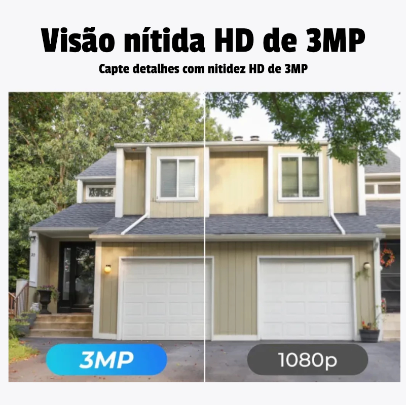 Imagem de alta qualidade: Resolução de 3MP (2304 x 1296 pixels) com lente de 115° de ângulo de visão diagonal.