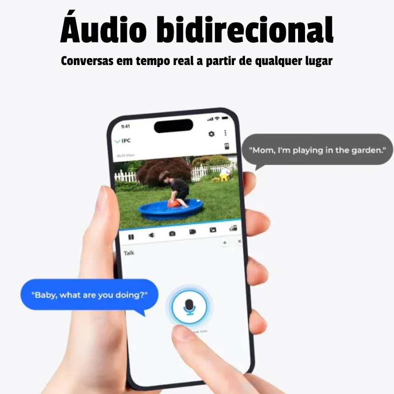 Áudio bidirecional: Permite ouvir e falar através da câmara.