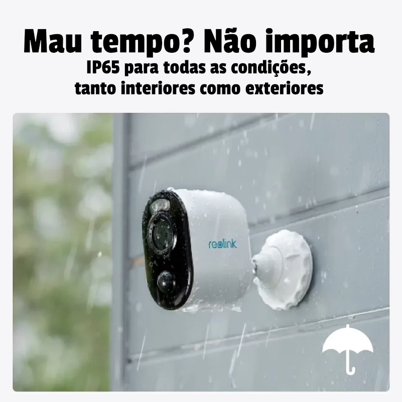 A Reolink Argus B310 é uma câmara de segurança sem fios, ideal para uso exterior, que combina alta resolução 3MP, visão noturna a cores e resistência às intempéries (IP65).