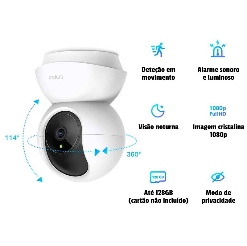 A TP-Link Tapo TC70 é uma câmara de segurança inteligente para interior que oferece imagem Full HD 1080p, rotação Pan-Tilt e controlo remoto através da app Tapo.
