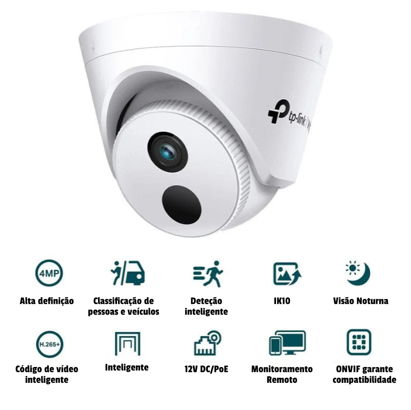 Compatível com PoE 802.3af ou alimentação 12 V, com consumo reduzido, integra-se facilmente no ecossistema TP-Link VIGI, permitindo gestão centralizada via NVR, interface web ou aplicação.