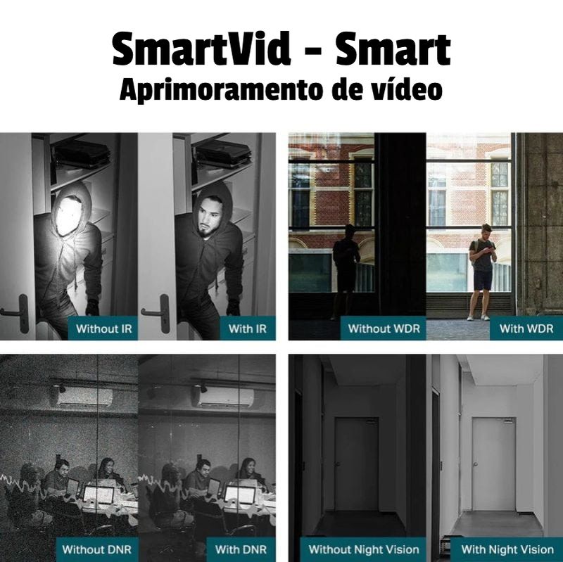Com Smart IR, garante visão noturna até 30 metros sem sobre-exposição, enquanto o modo corredor 9:16 maximiza a cobertura de zonas estreitas, permitindo vigiar mais com menos câmaras.