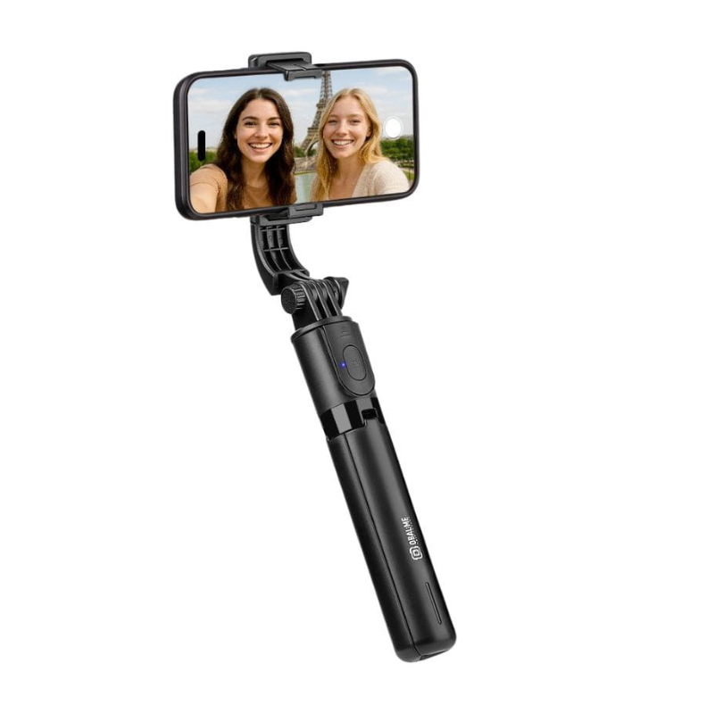 O OBAL:ME SelfiePod é um acessório 3-em-1 ultraleve, que combina pau de selfie extensível, tripé estável e disparador Bluetooth, ideal para selfies, fotografias de grupo, vídeos de viagem, vlogs e criação de conteúdo.