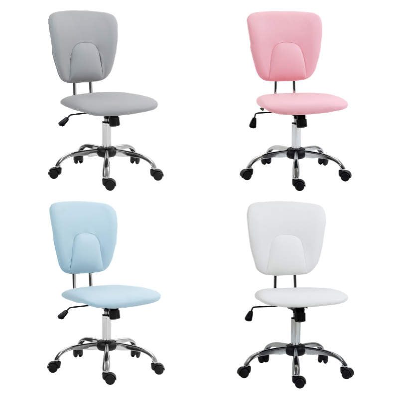 A cadeira de escritório HOMCOM sem apoios para os braços combina conforto moderno com funcionalidade prática, ideal para o teu espaço de trabalho ou estudo.