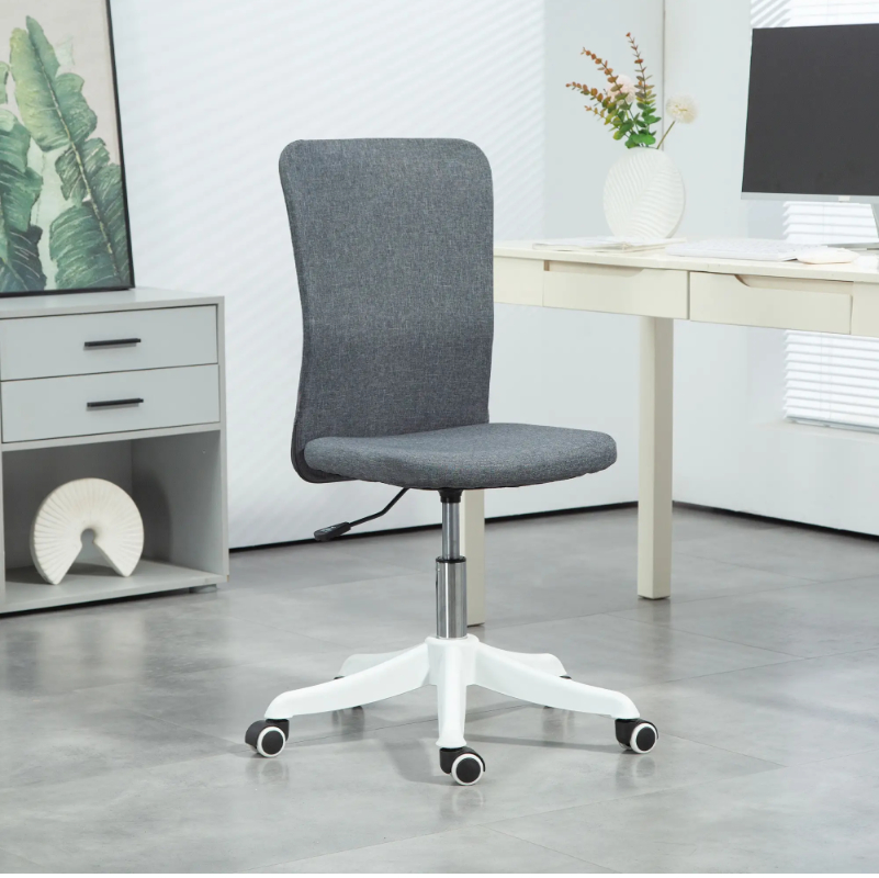 1 × Cadeira de escritório HOMCOM sem apoios para os braços, estofada em linho sintético