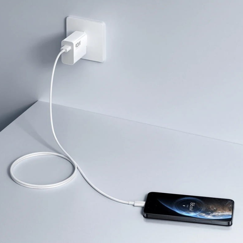 O Xiaomi 90W HyperCharge Combo oferece carregamento rápido até 90W, permitindo carregar os seus dispositivos de forma eficiente e segura.