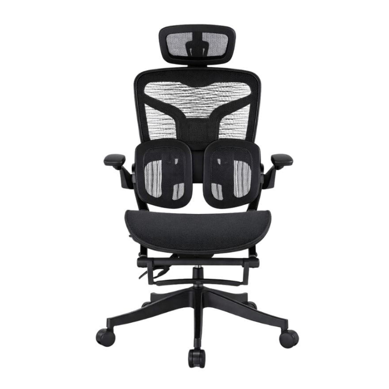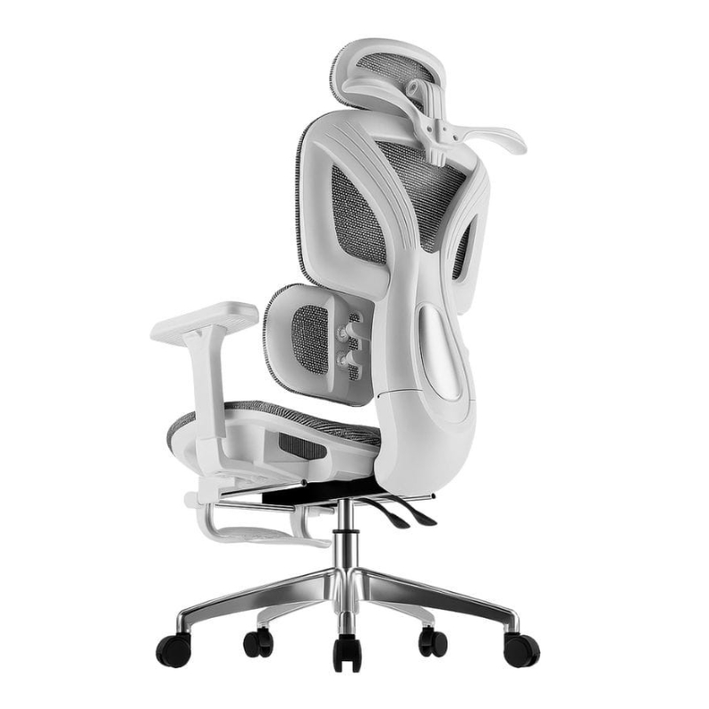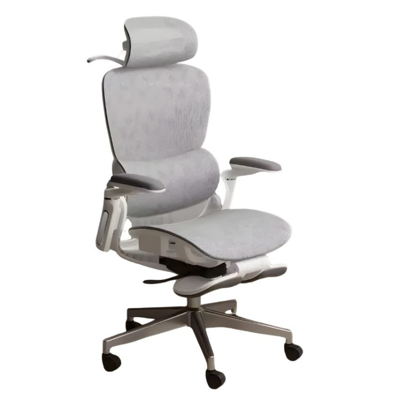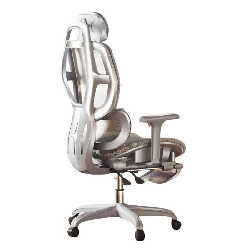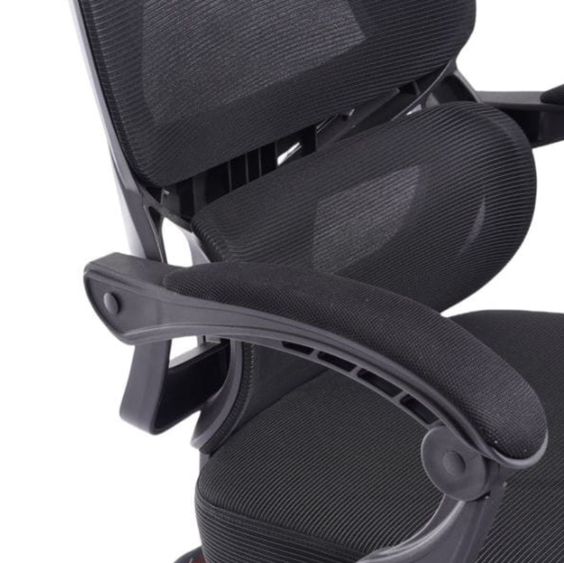 Destaca-se pelo apoio de cabeça ajustável 8D, suporte lombar regulável, apoia-braços extensível e um ângulo de inclinação de 90º a 135º, proporcionando uma postura correta ao longo de todo o dia de trabalho.