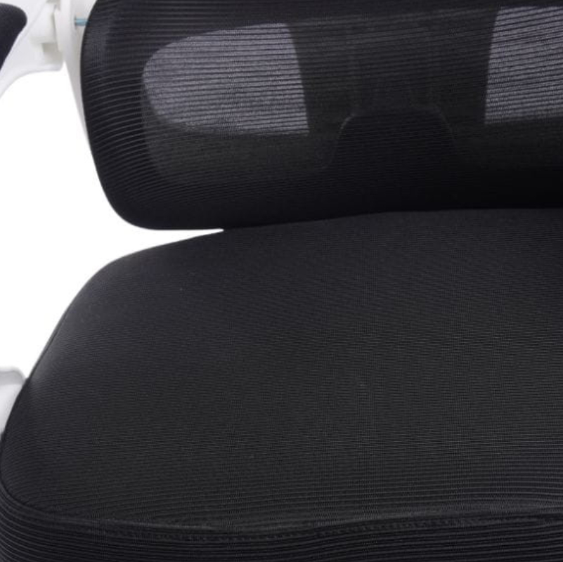 O assento utiliza tecido de nylon 320D, respirável e durável, enquanto o encosto é em rede resistente, garantindo ventilação e suporte durante todo o dia. A elevação é regulável através do pistão a gás classe 2, suportando utilizadores até 110 kg.
