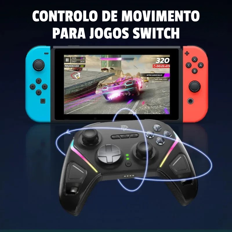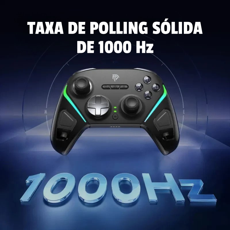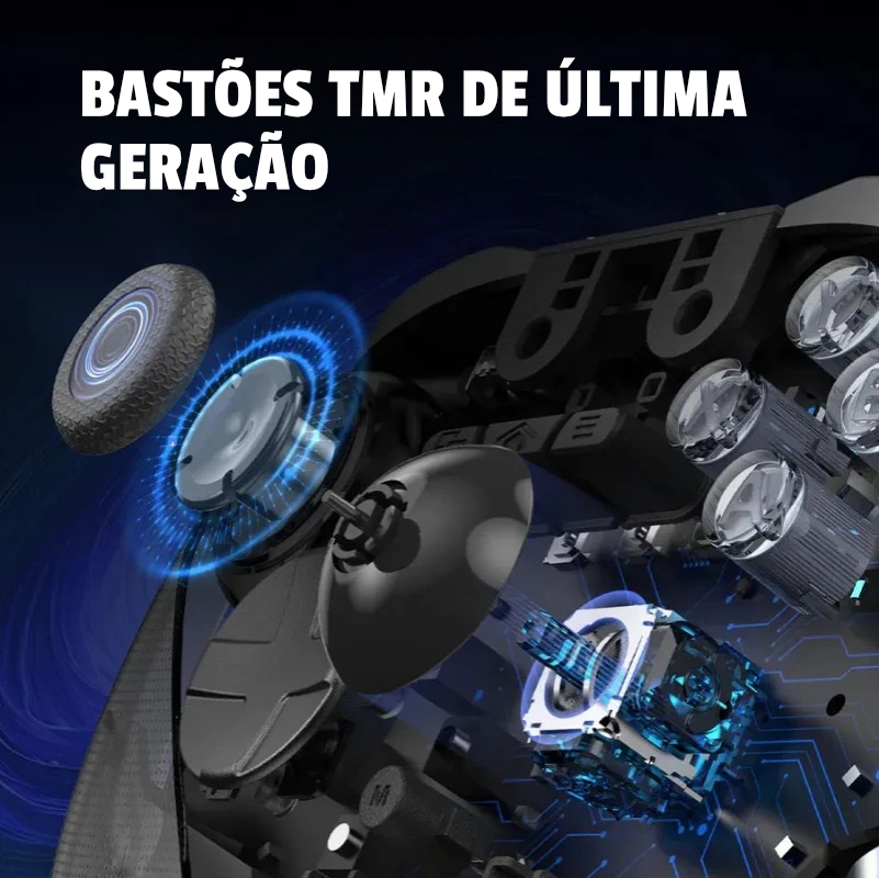 Com joysticks TMR antideriva, gatilhos híbridos Hall + micro-switch e base de carregamento inteligente, este comando combina desempenho competitivo com estilo, ergonomia e iluminação RGB personalizável.