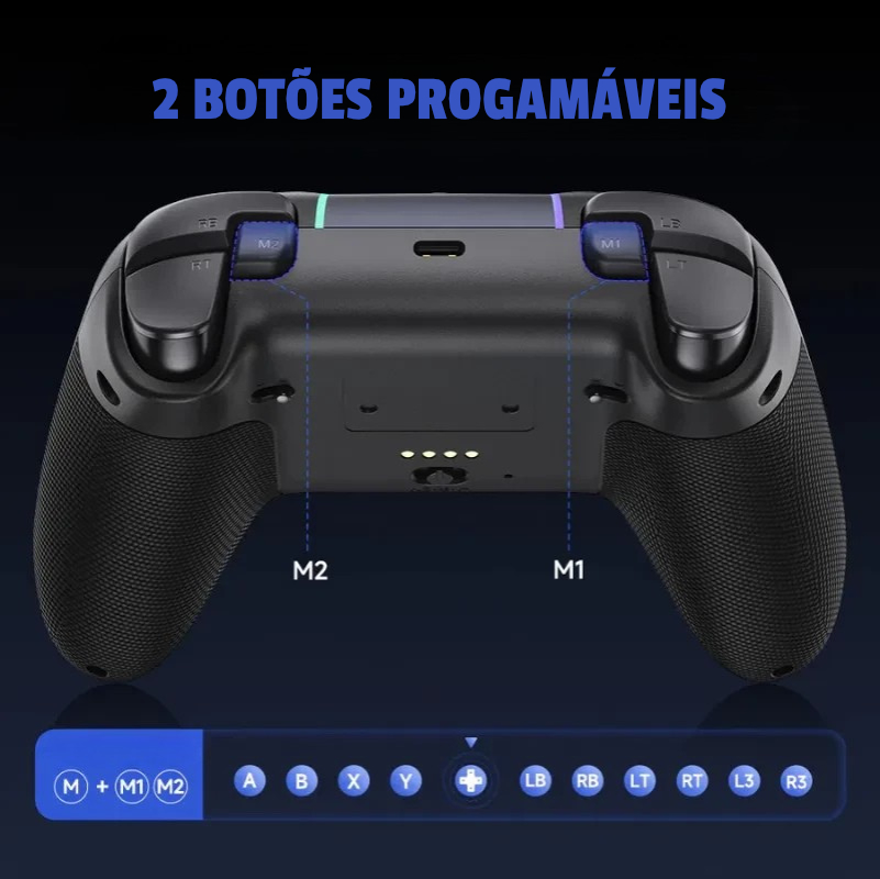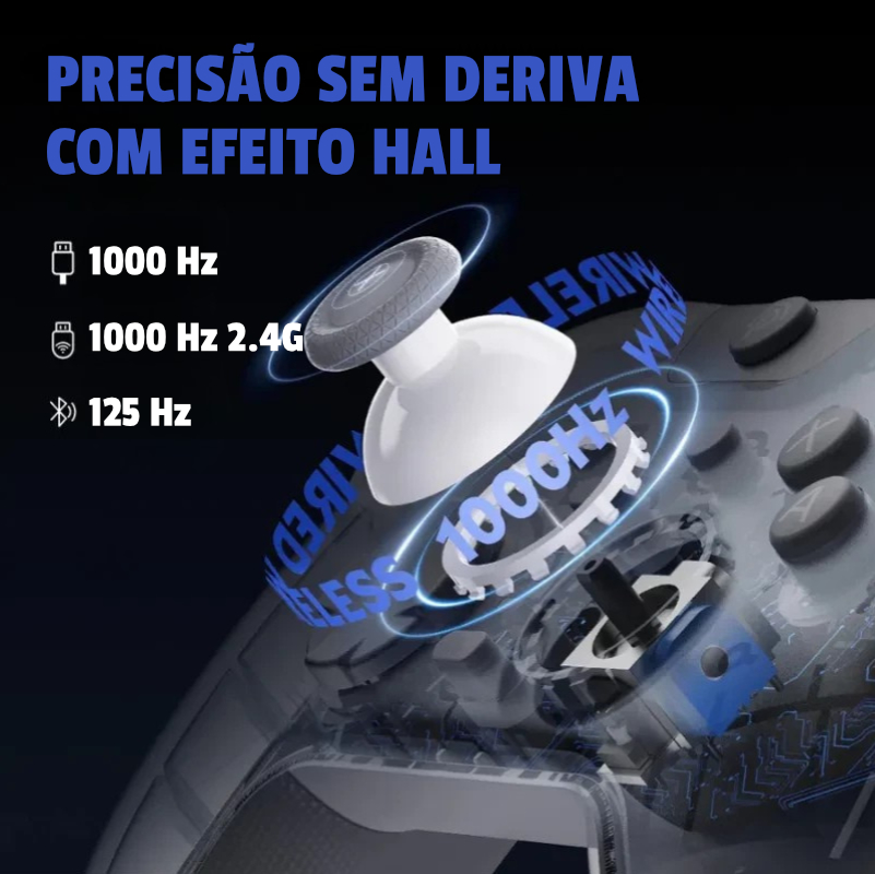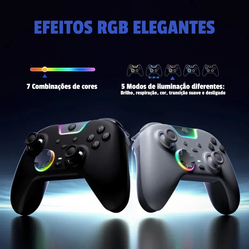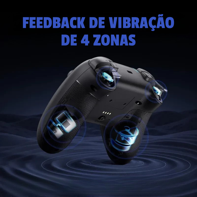 Combina botões silenciosos com amortecimento em silicone, joysticks e gatilhos Hall Effect de duplo curso e tripla conectividade (2,4 GHz, Bluetooth e USB-C), garantindo desempenho consistente em várias plataformas.
