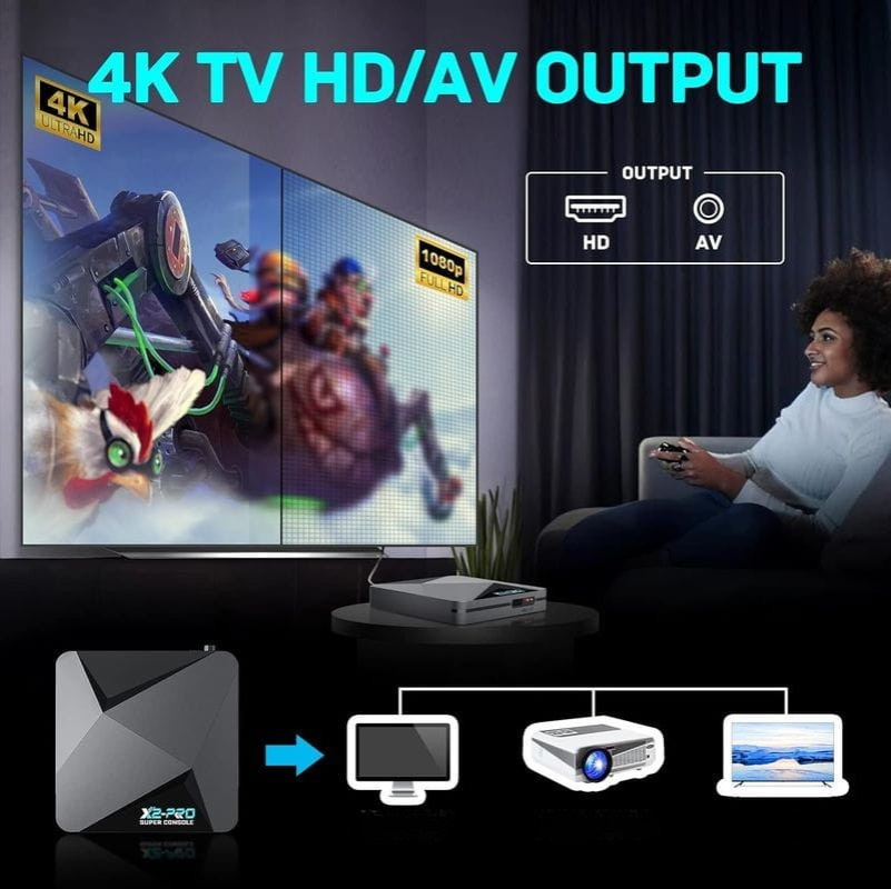 A Super Console X2 Pro é uma consola retro versátil e poderosa, ideal para os amantes de videojogos clássicos.