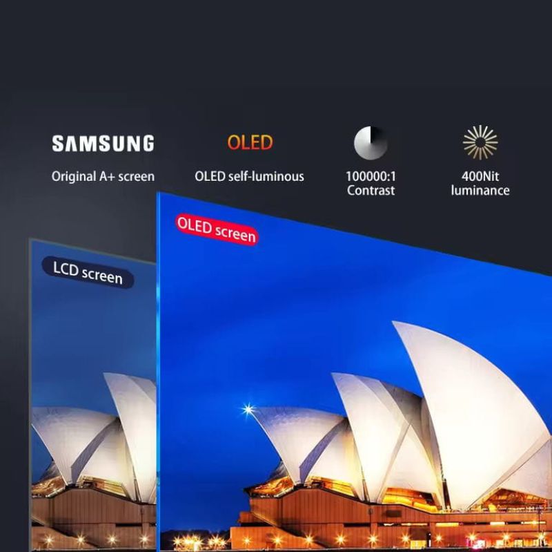 O painel Full HD suporta HDR10, apresenta 100% DCI-P3 e até 1,07 mil milhões de cores, garantindo uma experiência visual imersiva e precisa.
