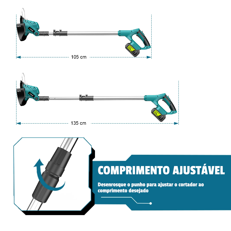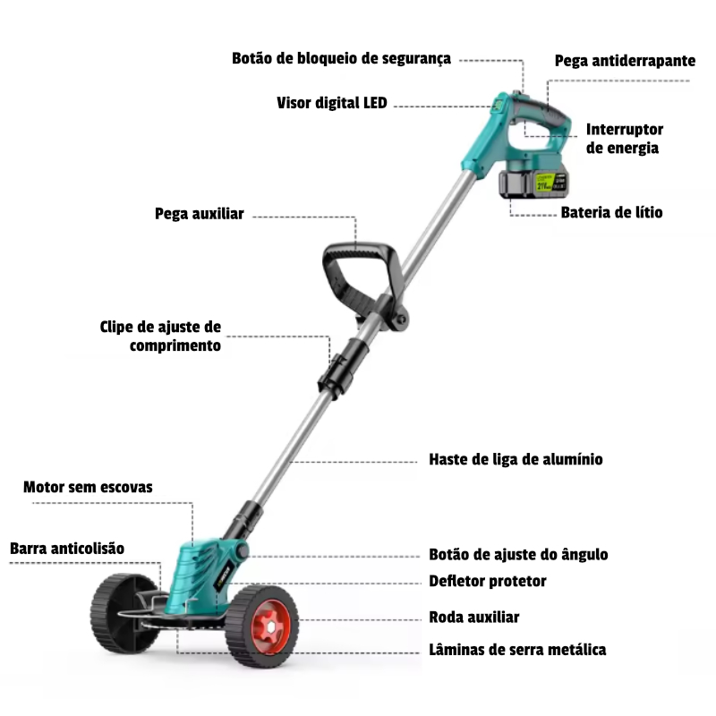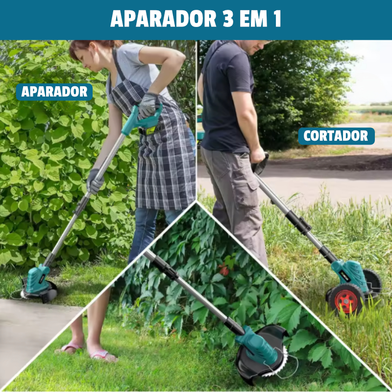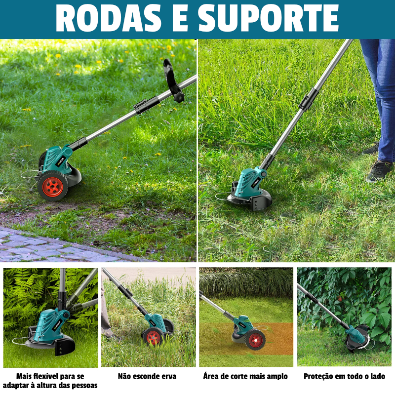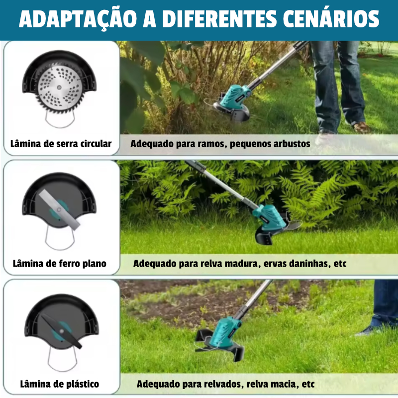 O Cortador da Relva Elétrico sem fios 3 em 1 é um cortador com motor brushless de alta eficiência, ideal para jardins, quintais e pequenas áreas agrícolas.