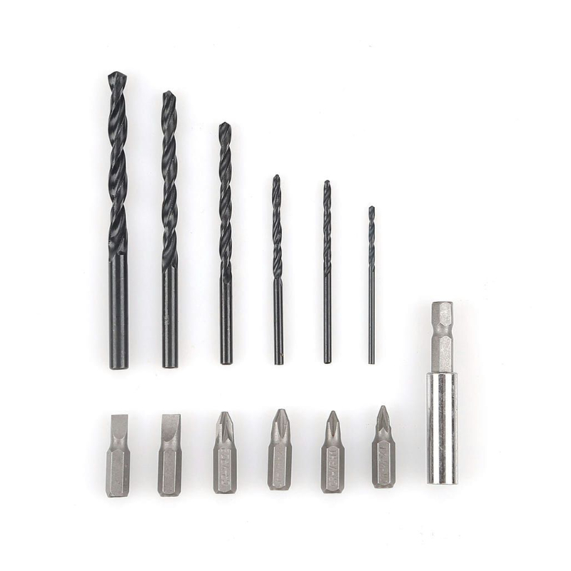 Inclui bateria de lítio 2.0Ah, carregador rápido (60 min) e um kit completo de 13 acessórios — tudo num maletim rígido de PVC para transporte e arrumação prática.